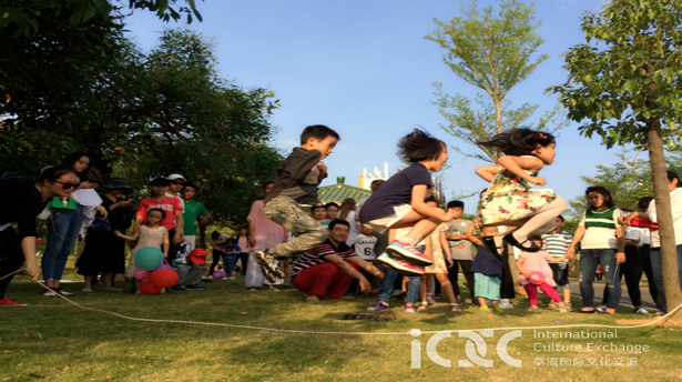 几个小朋友为一组,看哪一组能不磕磕碰碰的完成指定次数的跳绳,用时最少的一组胜利。看看我们的孩子们,真的用尽全力,都快飞起来了。