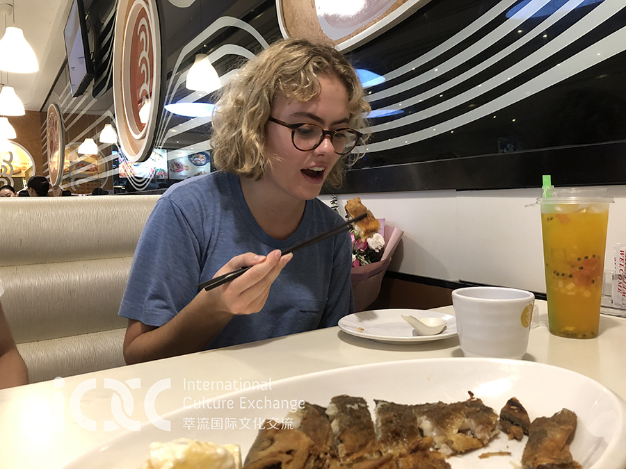 落地后家庭妈妈带Claire品尝中国美食